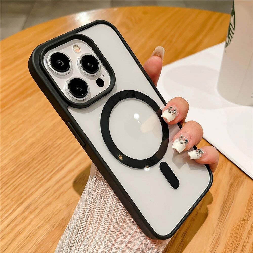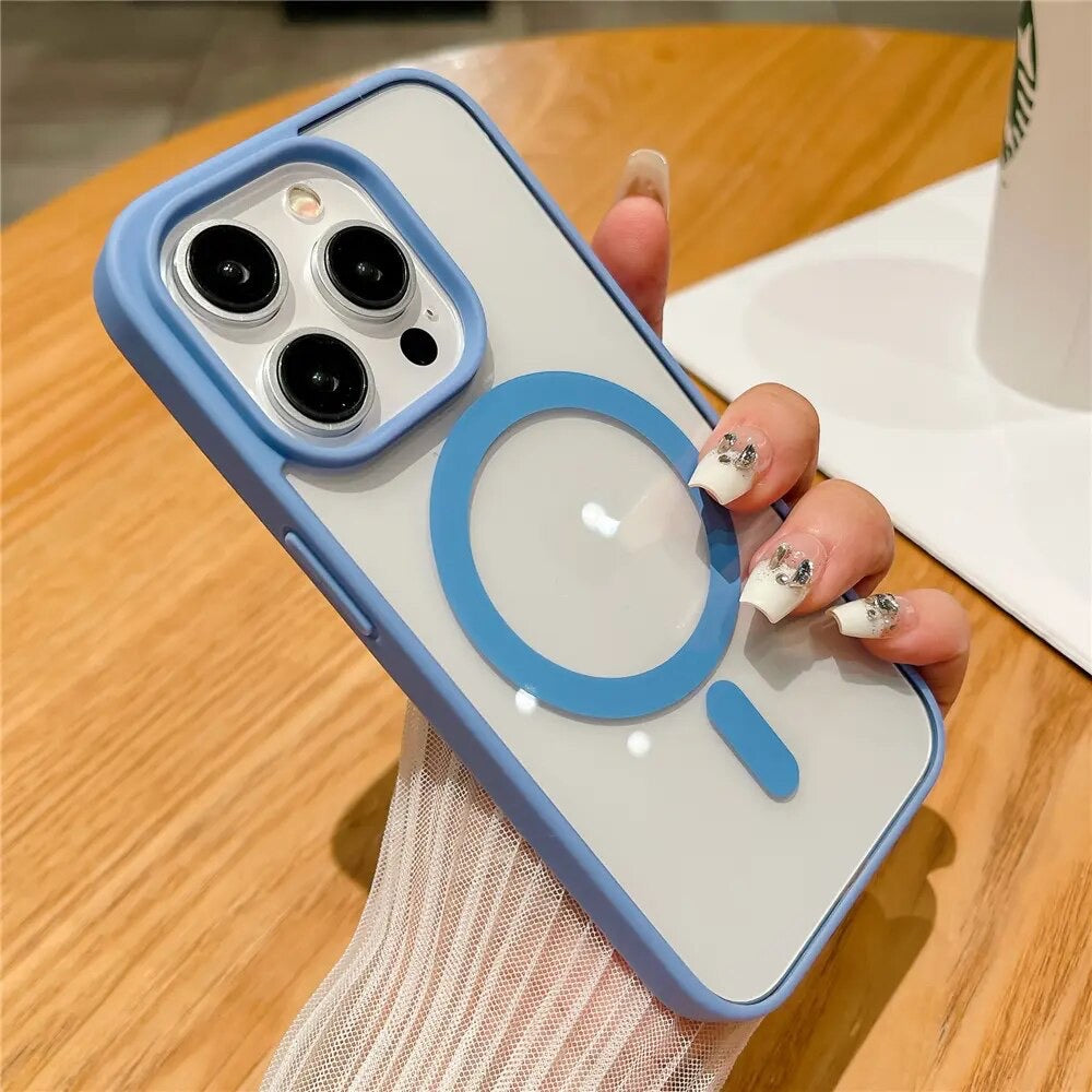 [Compatible with Magsafe Products] Magnet integrated shock absorption case Powerful built-in Magnets with 1,500 g of holding force enable faster, easier place-and-go Wireless Charging and a secure lock on any Magnetic accessory.