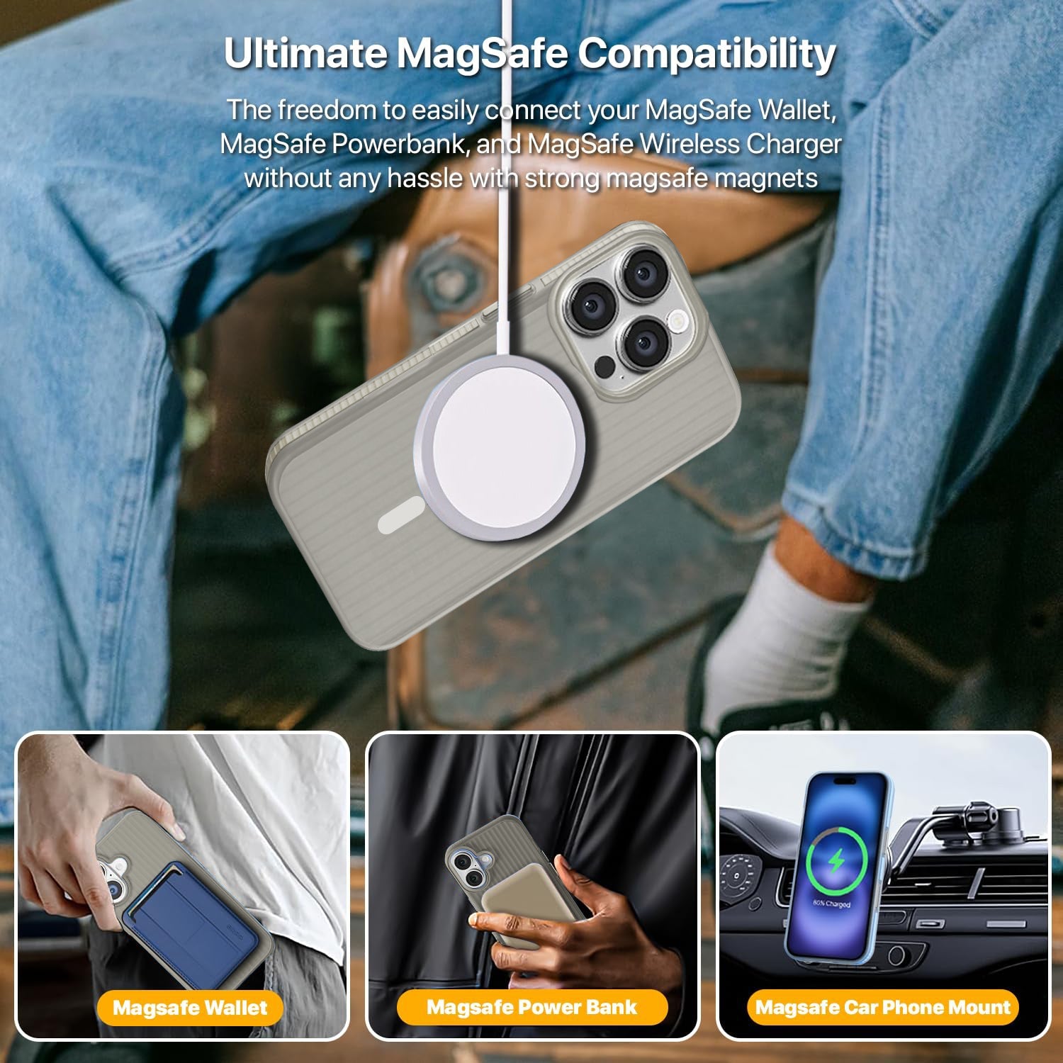 ★ MagSafe & Wireless Charging Compatible: Enjoy secure, efficient charging with powerful magnets for perfect alignment. Seamlessly integrates with MagSafe accessories (Power Bank, Wallet, Car Mount, etc.).
