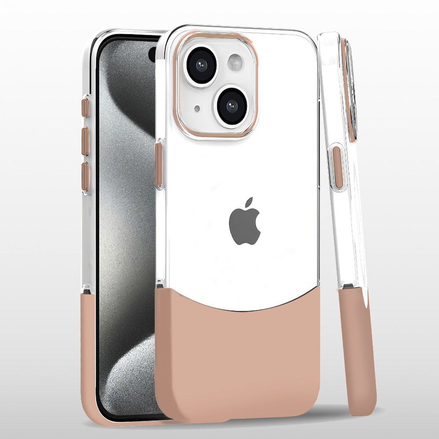 iPhone 15 Back Cover Detachable inter Lock Crystal Clear Non-yellowing Slim Alloy Button Bumper Case